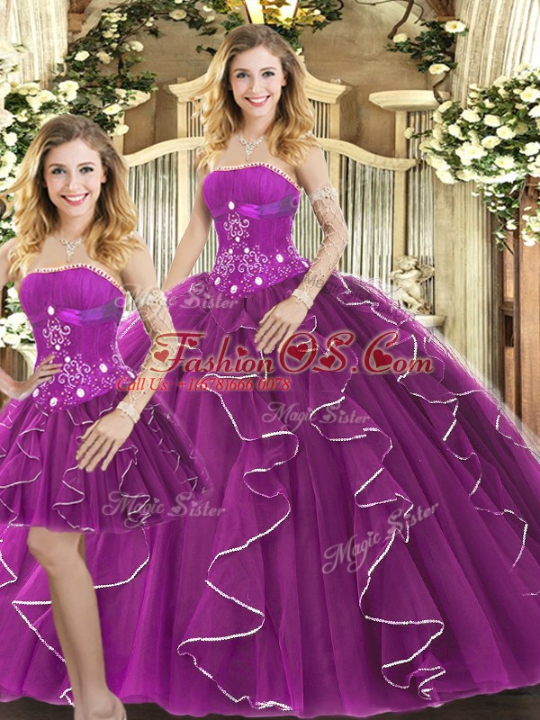 Decent Strapless Sleeveless Lace Up Sweet 16 Dresses Purple Tulle