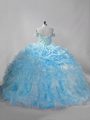 Home >  Quinceanera Dresses >  Custom Made Quinceanera Dresses > Decent Straps Sleeveless Brush Train Lace Up Quinceanera Gown Baby Blue Organza