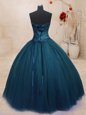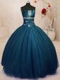 Decent Teal Ball Gowns Beading and Ruffles and Sequins Quinceanera Dress Lace Up Tulle Cap Sleeves Floor Length