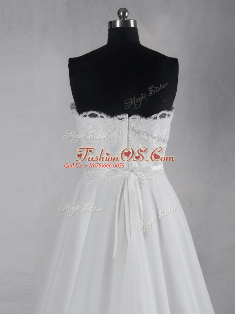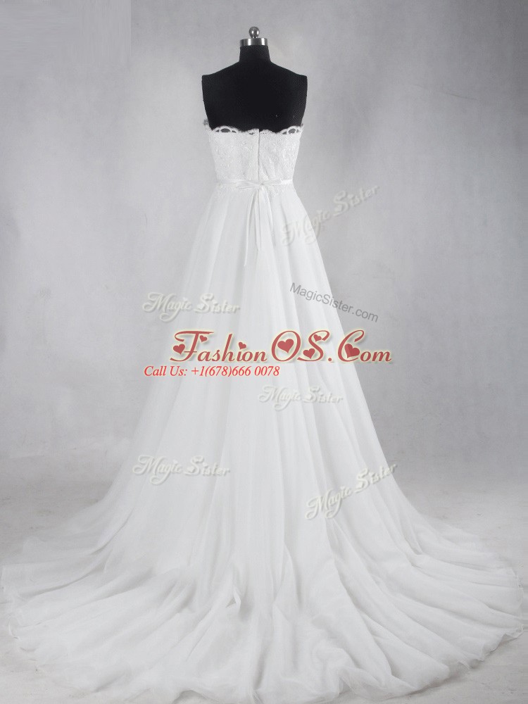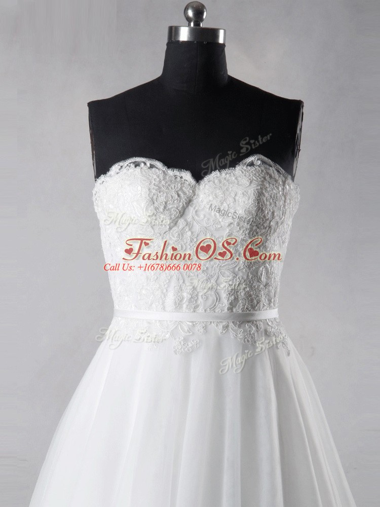 Decent White Wedding Dresses Tulle Brush Train Sleeveless Lace