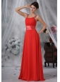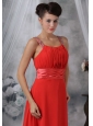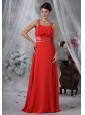 Decorah Iowa Beaded Decorate Straps Ruched Bodice Red Chiffon Floor-length For 2013 Prom / Evening Dress