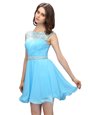 Home >  Prom Dresses >  Elegant Prom Dresses > Delicate Baby Blue Bateau Zipper Beading and Ruching Prom Dresses Sleeveless