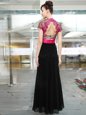 Delicate Chiffon V-neck Short Sleeves Zipper Appliques and Ruching Mother Of The Bride Dress in Red And Black