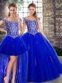 Delicate Floor Length Three Pieces Sleeveless Royal Blue Ball Gown Prom Dress Lace Up