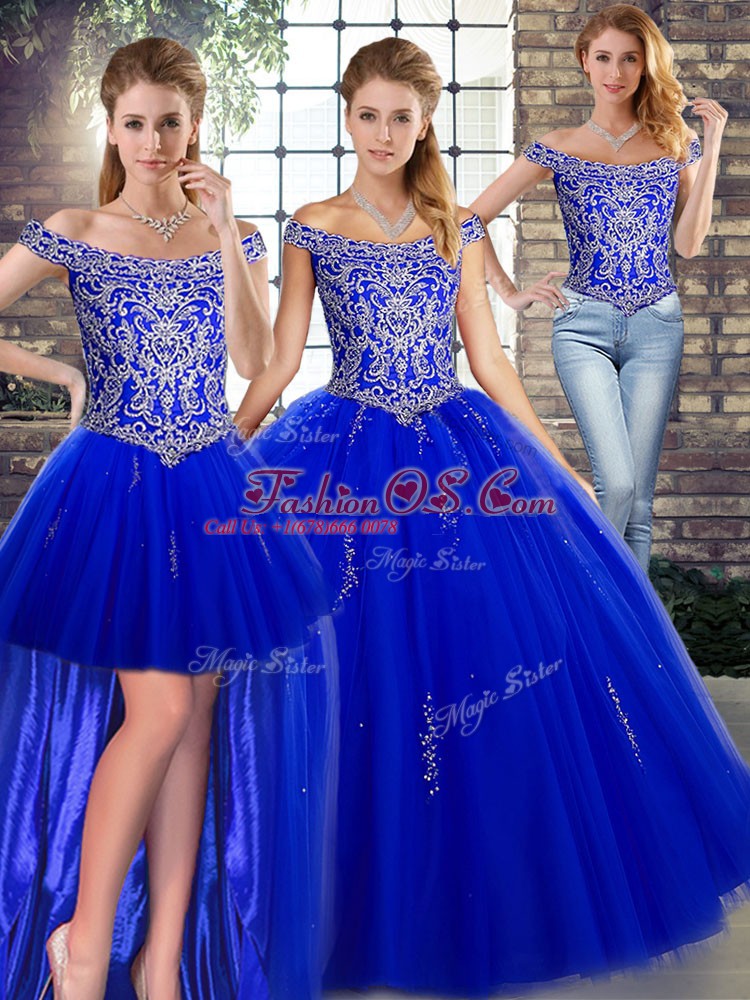 Home >  Quinceanera Dresses >  Detachable Quinceanera Skirts > Delicate Floor Length Three Pieces Sleeveless Royal Blue Ball Gown Prom Dress Lace Up