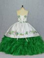 Delicate Green Lace Up Sweetheart Embroidery and Ruffles Sweet 16 Quinceanera Dress Organza Sleeveless