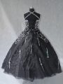 Delicate Halter Top Sleeveless Lace Up Quinceanera Gowns Black Organza