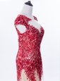 Delicate Mermaid Scoop Backless Red Mother Of The Bride Dress Tulle Brush Train Cap Sleeves Appliques
