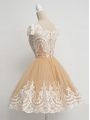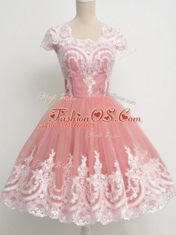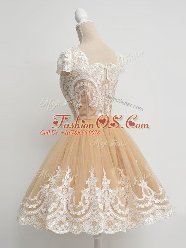 Delicate Peach Cap Sleeves Lace Knee Length Quinceanera Court of Honor Dress