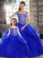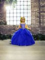Delicate Royal Blue Quinceanera Dress Military Ball and Sweet 16 and Quinceanera with Beading and Ruffles Off The Shoulder Sleeveless Brush Train Lace Up