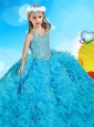 Delicate Straps White Little Girl Pageant Dress with Beading and Ruffles