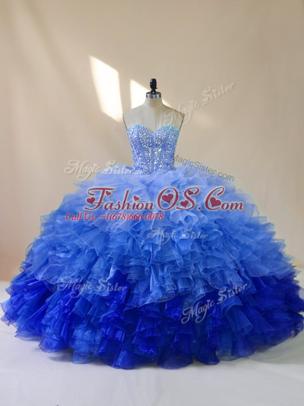 Delicate Sweetheart Sleeveless 15 Quinceanera Dress Floor Length Beading and Ruffles Multi-color Organza