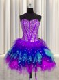 Delicate Three Piece Visible Boning Multi-color Sleeveless Floor Length Beading and Ruffles and Ruffled Layers and Sequins Lace Up Quinceanera Gown