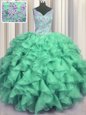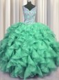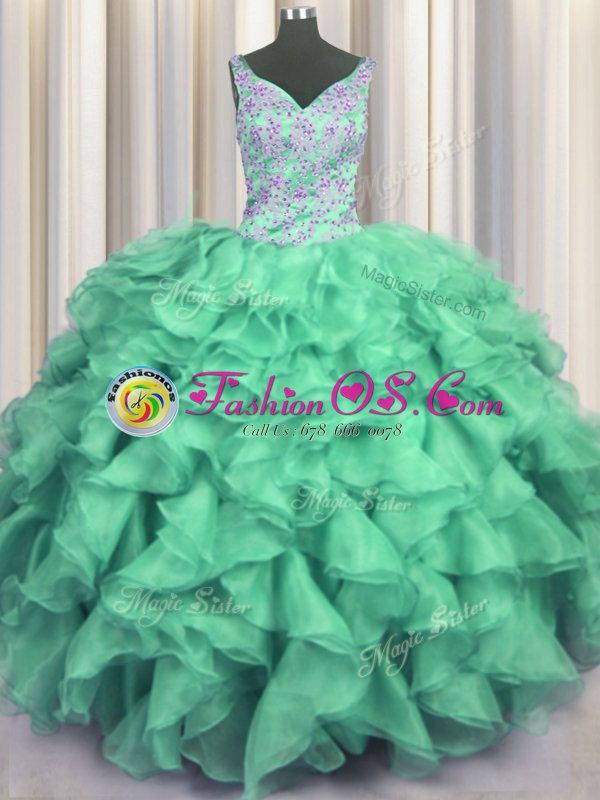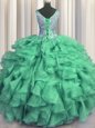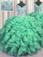 Delicate V Neck Sleeveless Beading and Ruffles Lace Up Sweet 16 Quinceanera Dress