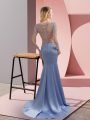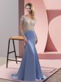 Deluxe Beading Evening Dress Lavender Zipper 3 4 Length Sleeve Brush Train