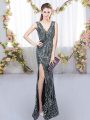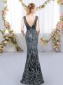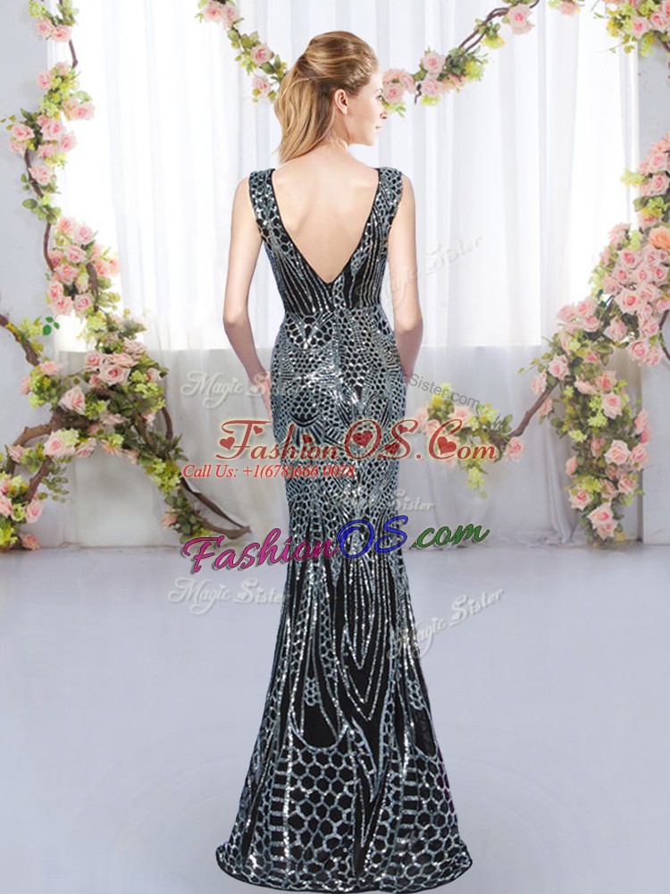 Deluxe Floor Length Black Bridesmaid Gown Sleeveless Sequins