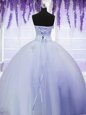Deluxe Four Piece Purple Ball Gowns Strapless Sleeveless Organza Floor Length Lace Up Embroidery and Ruffles Sweet 16 Dresses