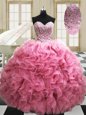 Home >  Quinceanera Dresses >  Sweet 16 Dresses > Deluxe Four Piece Purple Ball Gowns Strapless Sleeveless Organza Floor Length Lace Up Embroidery and Ruffles Sweet 16 Dresses