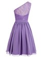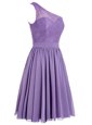 Deluxe Lavender A-line One Shoulder Sleeveless Chiffon Ankle Length Side Zipper Appliques Prom Dresses