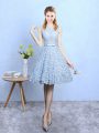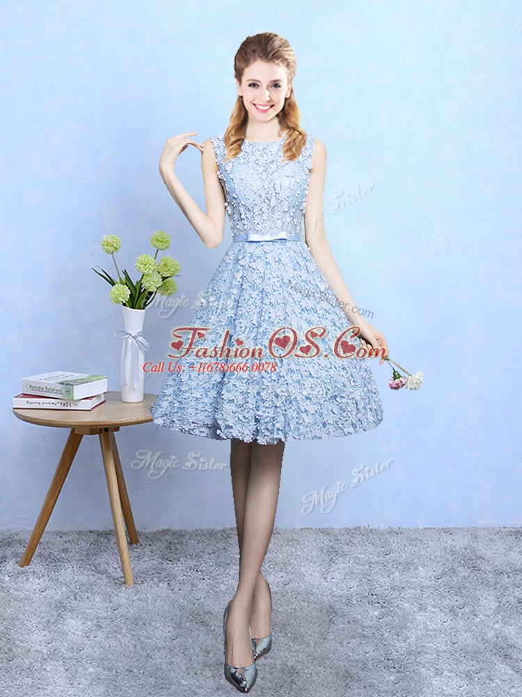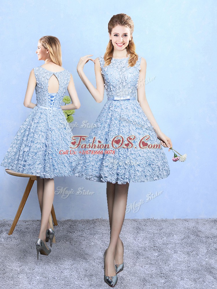 Deluxe Light Blue Scoop Neckline Belt Vestidos de Damas Sleeveless Lace Up