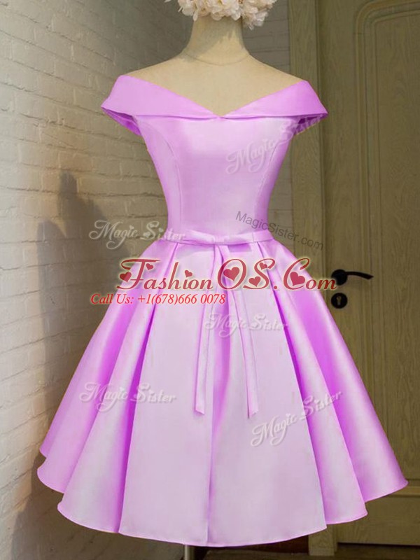 Deluxe Lilac A-line Belt Quinceanera Court Dresses Lace Up Taffeta Cap Sleeves Knee Length