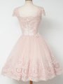 Deluxe Peach Zipper Square Lace Wedding Party Dress Tulle Cap Sleeves
