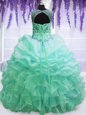 Deluxe Scoop Beading and Pick Ups Sweet 16 Dresses Turquoise Lace Up Sleeveless Floor Length