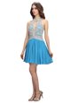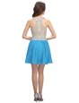 Deluxe Scoop Chiffon Sleeveless Mini Length Prom Gown and Beading