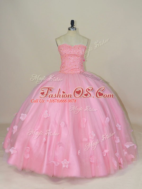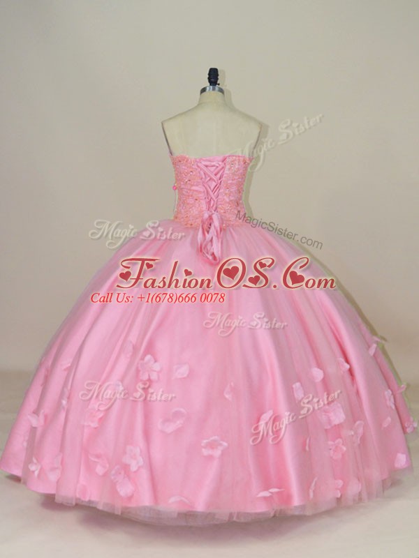 Home >  Quinceanera Dresses >  In Stock Quinceanera Dresses > Deluxe Sleeveless Lace Up Floor Length Beading and Hand Made Flower Quinceanera Dress