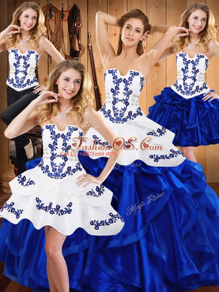 Home >  Quinceanera Dresses >  Detachable Quinceanera Skirts > Deluxe Sleeveless Lace Up Floor Length Embroidery and Ruffles Sweet 16 Dresses
