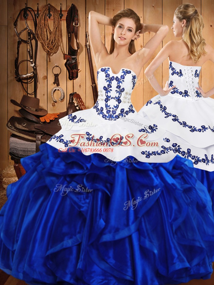 Deluxe Sleeveless Lace Up Floor Length Embroidery and Ruffles Sweet 16 Dresses