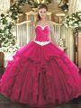 Deluxe Sweetheart Sleeveless Vestidos de Quinceanera Floor Length Appliques and Ruffles Hot Pink Organza