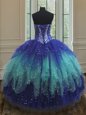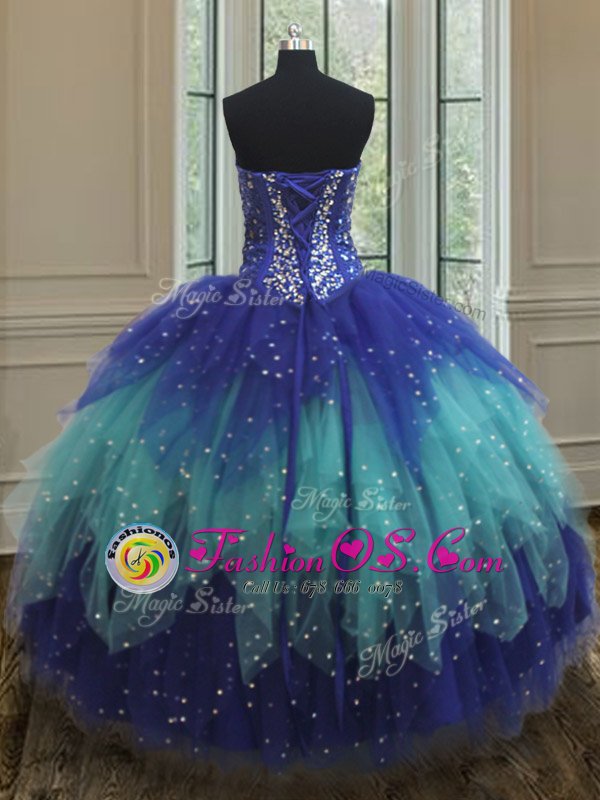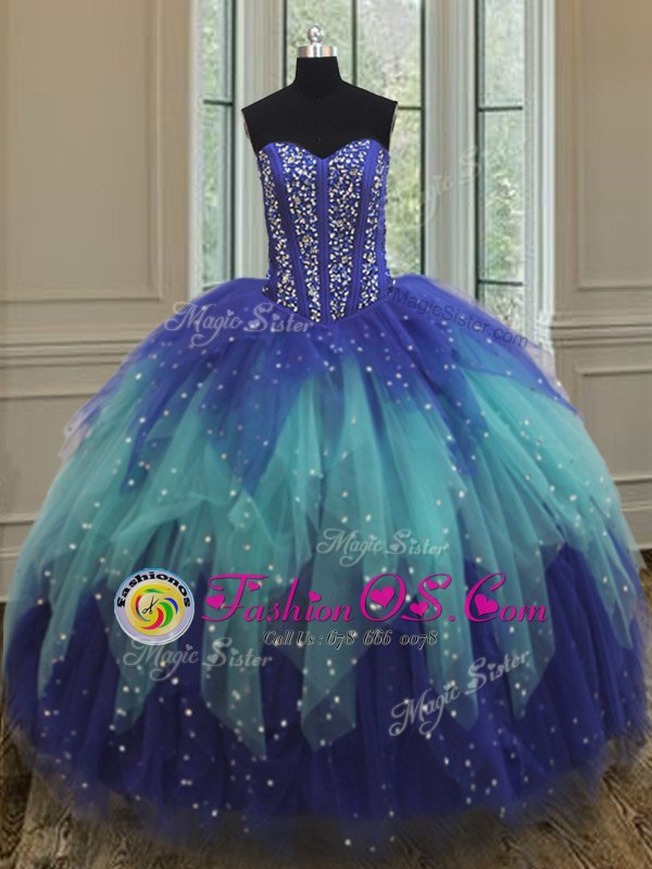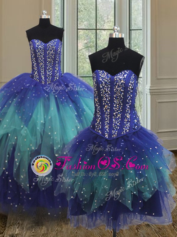 Deluxe Three Piece Sleeveless Lace Up Floor Length Beading and Ruffles Sweet 16 Dresses