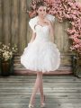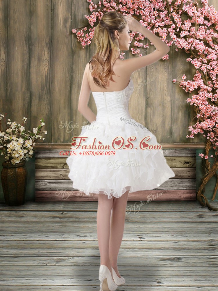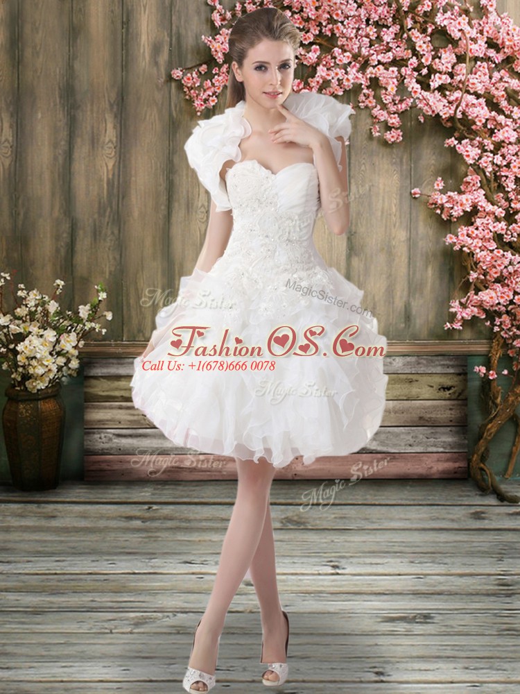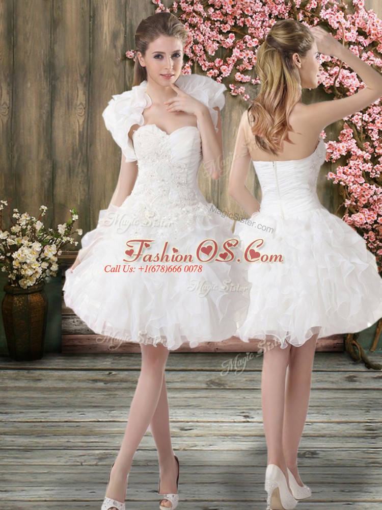 Deluxe White Organza Zipper Wedding Dress Sleeveless Knee Length Beading and Embroidery
