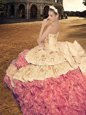 Home >  Quinceanera Dresses >  Custom Made Quinceanera Dresses > Deluxe With Train Pink And White Sweet 16 Dress Sweetheart Sleeveless Court Train Lace Up