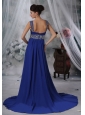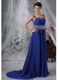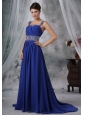 Home >  Prom Dresses >  Elegant Prom Dresses > Des Moines Iowa Beaded Decorate Straps and Waist Brush Train Royal Blue Chiffon Prom / Evening Dress For 2013