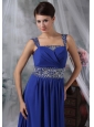 Des Moines Iowa Beaded Decorate Straps and Waist Brush Train Royal Blue Chiffon Prom / Evening Dress For 2013