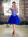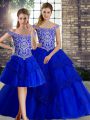 Designer Beading and Lace Sweet 16 Dress Royal Blue Lace Up Sleeveless Brush Train