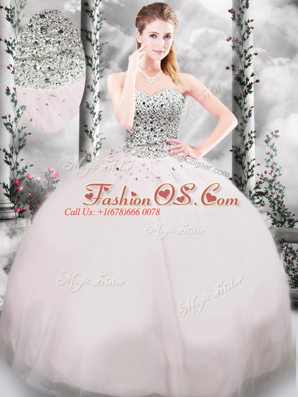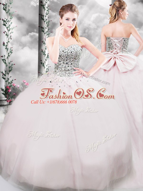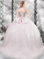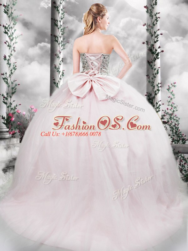 Designer Brush Train Ball Gowns Quinceanera Dresses Pink Sweetheart Tulle Sleeveless Lace Up