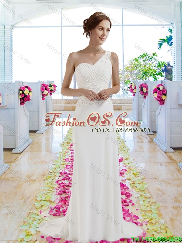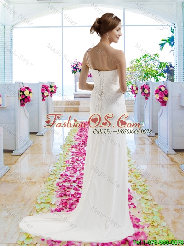 Home >  Wedding Dresses >  Romantic Wedding Dresses > Designer Column One Shoulder Wedding Dresses for Beach