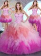 Designer Four Piece Floor Length Multi-color Sweet 16 Dress Sweetheart Sleeveless Lace Up