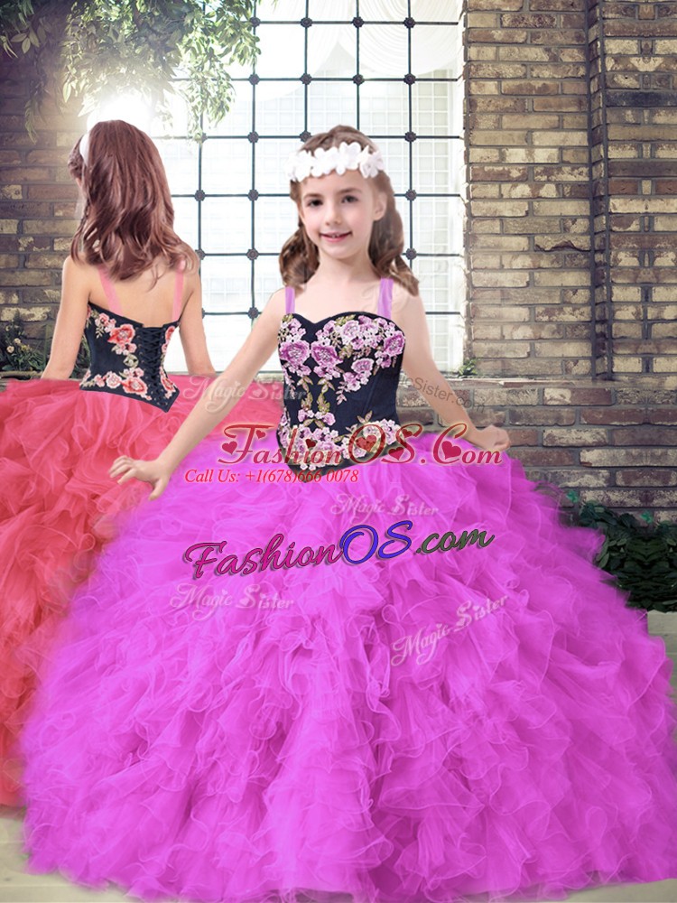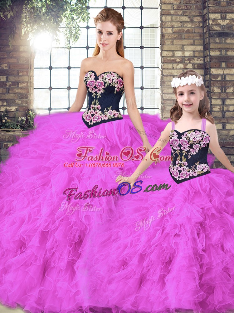 Home >  Quinceanera Dresses >  Matching Sister Quinceanera Dresses > Designer Fuchsia Ball Gowns Tulle Sweetheart Sleeveless Beading and Embroidery Floor Length Lace Up 15 Quinceanera Dress