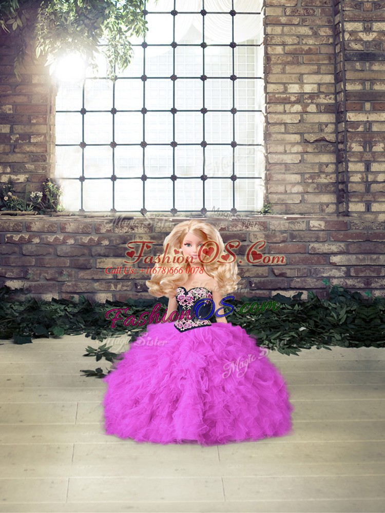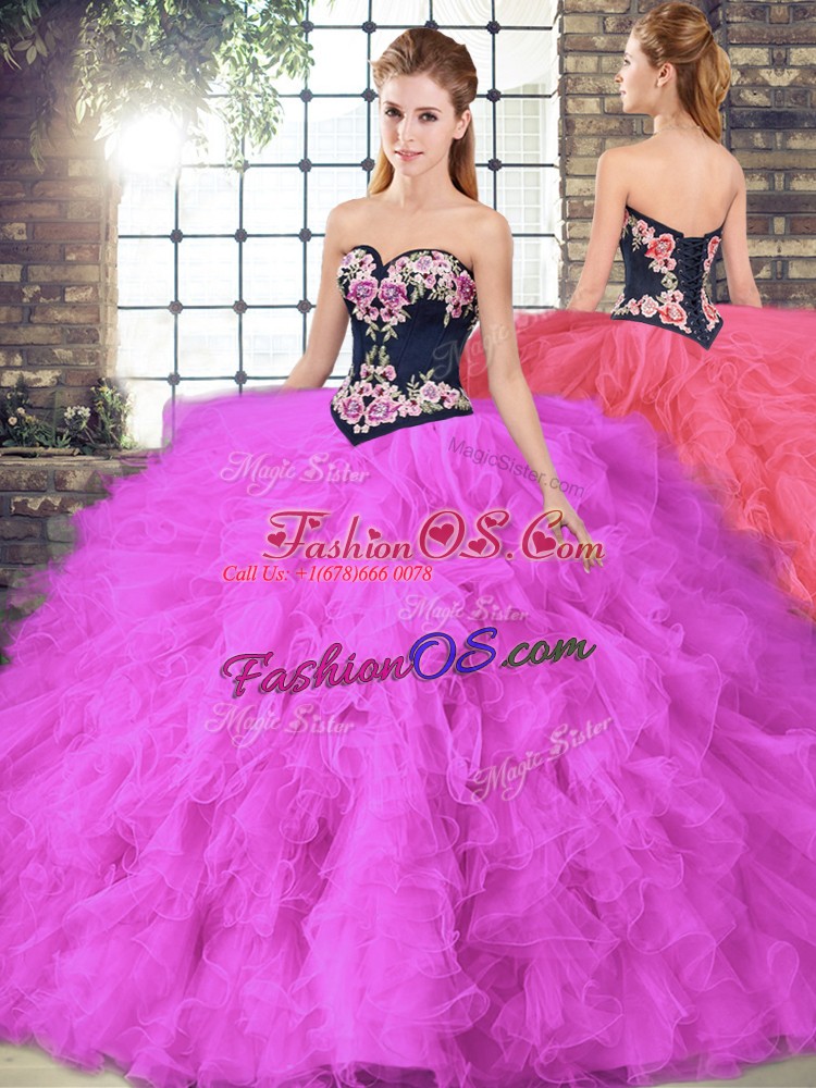 Designer Fuchsia Ball Gowns Tulle Sweetheart Sleeveless Beading and Embroidery Floor Length Lace Up 15 Quinceanera Dress