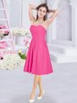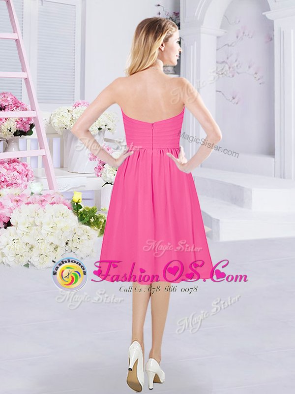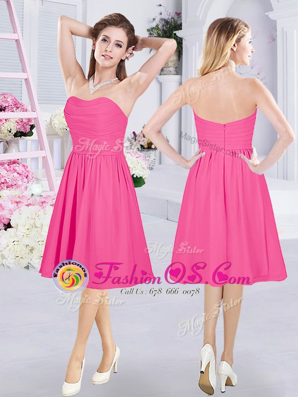 Designer Hot Pink Chiffon Zipper Dama Dress for Quinceanera Sleeveless Knee Length Ruching