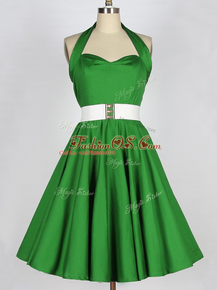 Designer Knee Length Bridesmaids Dress Taffeta Sleeveless Belt