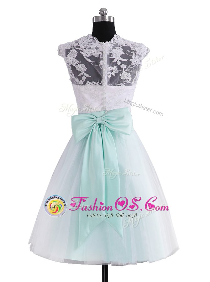 Designer Lace and Sashes|ribbons Cocktail Dress Blue And White Zipper Sleeveless Mini Length