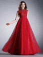 Home >  Prom Dresses >  Discount Prom Dresses > Designer Lace Red Zipper Cap Sleeves Floor Length