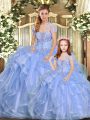 Designer Lavender Strapless Neckline Beading and Ruffles Quinceanera Gown Sleeveless Lace Up