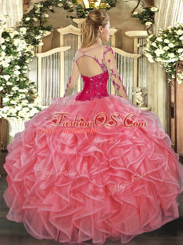 Designer Long Sleeves Floor Length Lace and Ruffles Lace Up Quinceanera Dress with Lavender