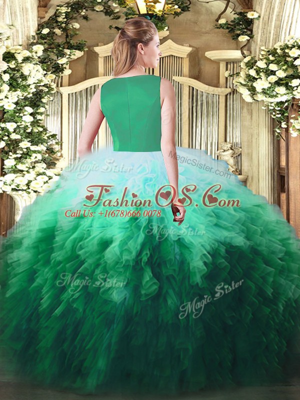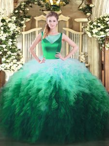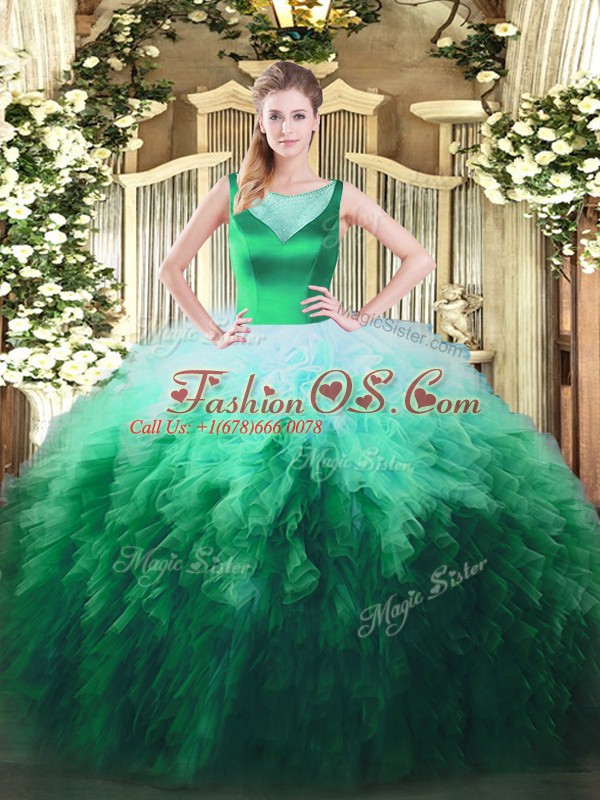 Designer Multi-color Ball Gowns Scoop Sleeveless Tulle Floor Length Side Zipper Beading and Ruffles Quinceanera Dress